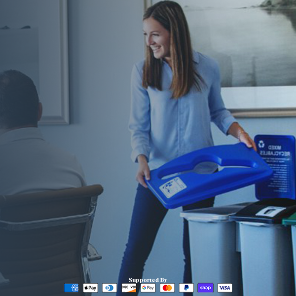 View full detailsBusch Systems Mezzo™ Triple Waste + Recyclables + Organics Station – 170 Litre (45 Gallon) – White Body / Blue-Green-Black Lids – Item #101513 Pre...